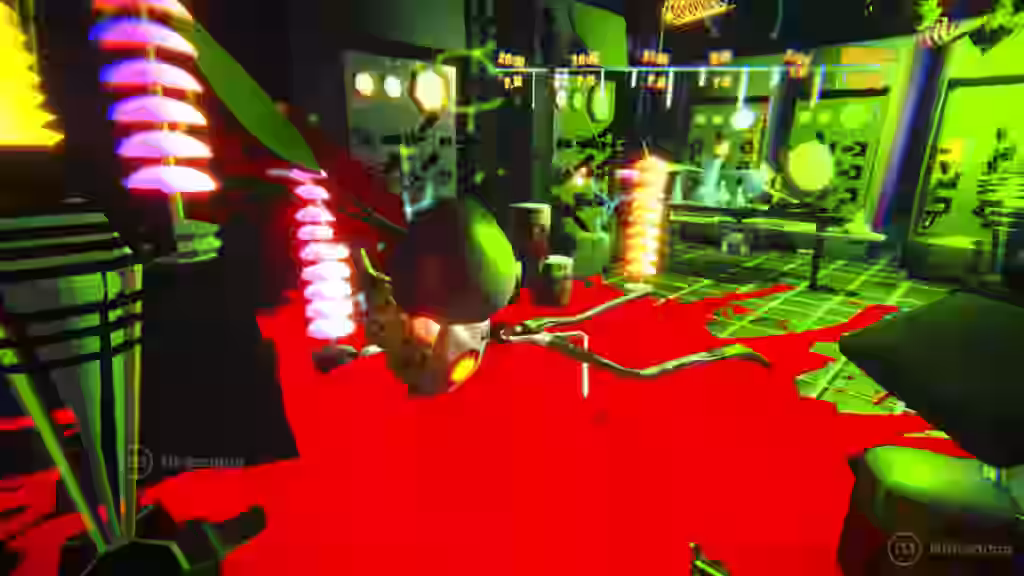 Visualmente, Tamarindo’s Freaking Dinner es… distinto a todo. Esta aventura en primera persona un estilo propio, cargado de personalidad, que mezcla lo grotesco con lo caricaturesco, dando forma a escenarios que parecen salidos de un viaje psicotrópico de Tim Burton. Todas las estancias, pasillos y salas de la mansión están repletos de detalles, quizá un poco sobrecargados y caóticos (como la práctica totalidad del juego). Y todo además con luces y colores chillones que, en Switch 2, están bastante alejados de los juegos de luces y sombras de la versión de PC.