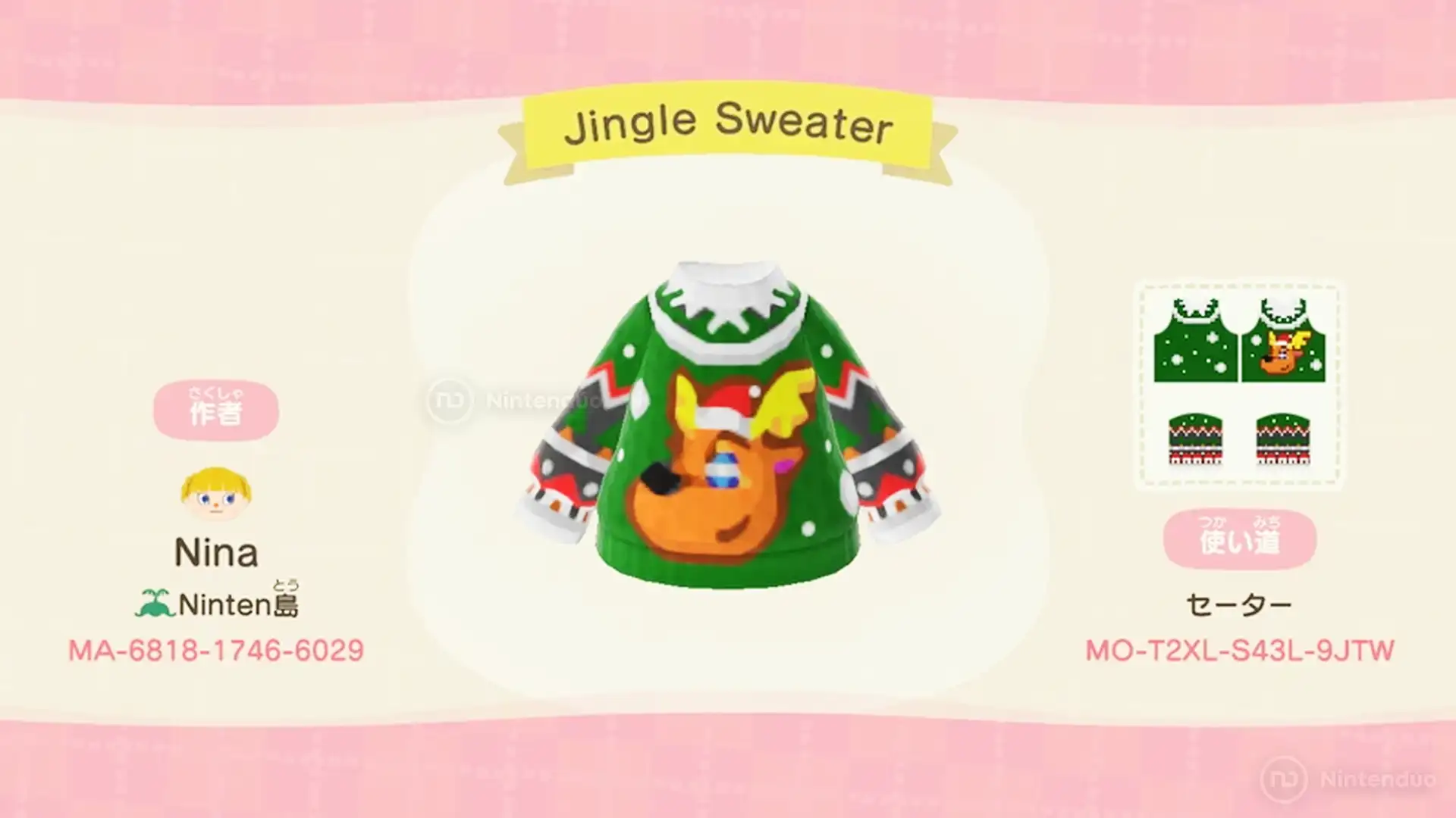 Son tres jerseys navideños, esos que todos conocemose como “jerseys feos” de Navidad. Uno tiene un diseño de Renato, el reno navideño; otro tiene un saquito de Bayas y otro una guirnalda como gran protagonista. Existen dos formas de conseguirlos, pero la más sencilla es acudir a la sastrería de las Hermanas Manitas, acceder al portal de diseños e introducir los siguientes códigos: