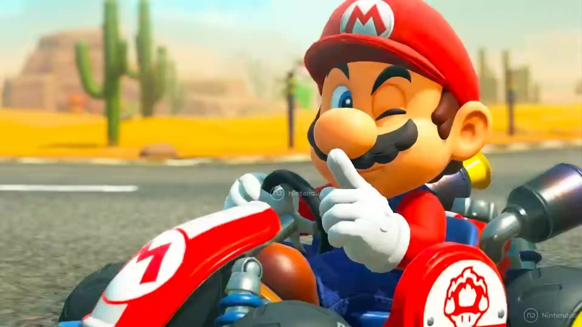 Mario conduciendo en Mario Kart World