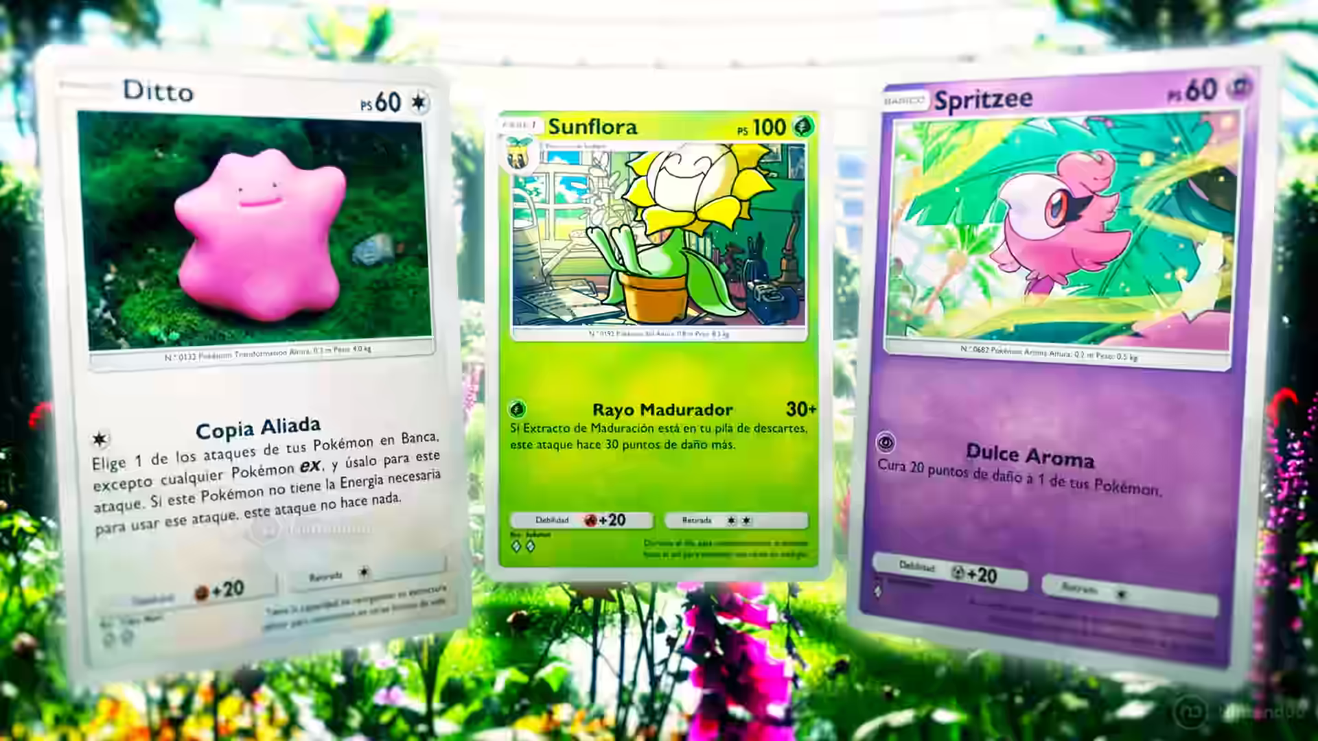 - Extracto de Maduración (Objeto) – Elige 1 de tus Pokémon Planta en juego. Pon un Pokémon Planta aleatorio de tu baraja que evolucione de ese Pokémon sobre ese Pokémon para hacerlo evolucionar. No puedes usar esta carta durante tu primer turno o sobre un Pokémon que se haya puesto en juego en este turno.